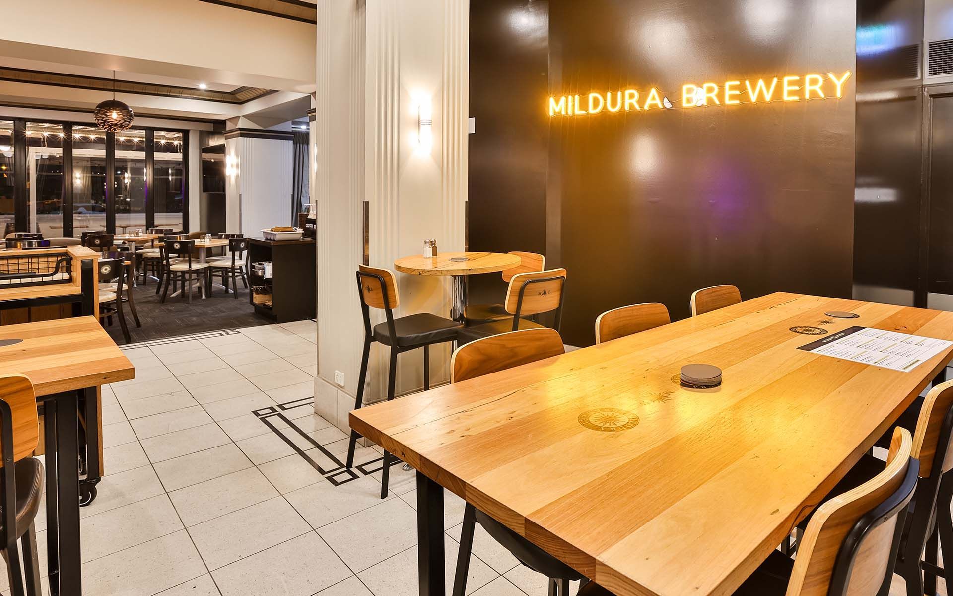 The Mildura Brewery offers its unique ribs menu as well as all of your pub favourites such as a variety of burgers, fish and chips and the signature Chicken Parma as well as a selection of pizzas, pasta, and salads. Top it off with a legendary brewed beer, a tasting paddle or one of our famous cocktails. We also offer a range of wines, spirits and generic beers.